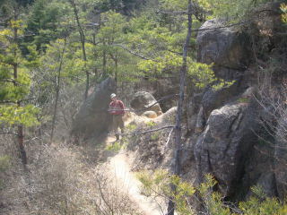 琵琶湖、比良山地の雄大な景色を望み、あまりの気持ちよさに、長時間岩の上で寝そべっていたというのはいうまでもありません。この季節にしか出来ない最高の贅沢でした。岩も花崗岩が風化してできたものらしく、穏やかな丸味を帯び、しかも滑らないのです。ただ、登れない岩も多く、それが残念ですが、それはそれで、その手の人に譲るのもいいのではと思いました。