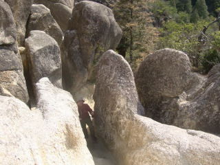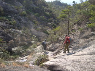稜線からの下りも、花崗岩の小さな滑滝状の沢で、最後まで小さな水の流れと戯れての楽しめる沢でした。つい、現役時代に青木さんから教えていただいた歌を歌いたくなりました。