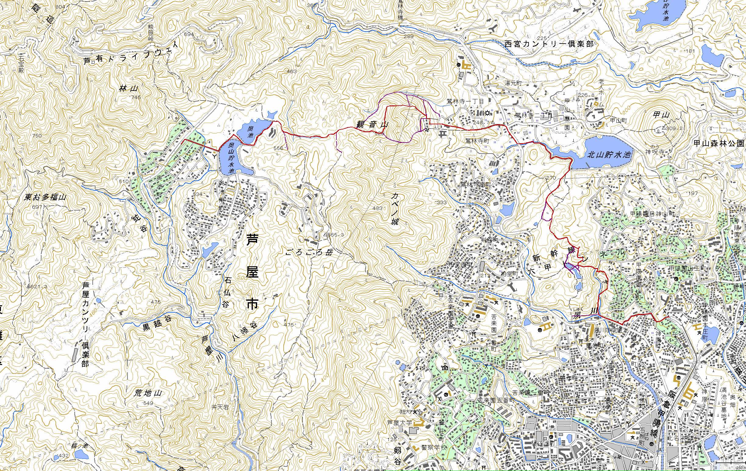 場 所 六甲前衛の山:観音山周辺 地形図 コース地図 鷲林寺付近図