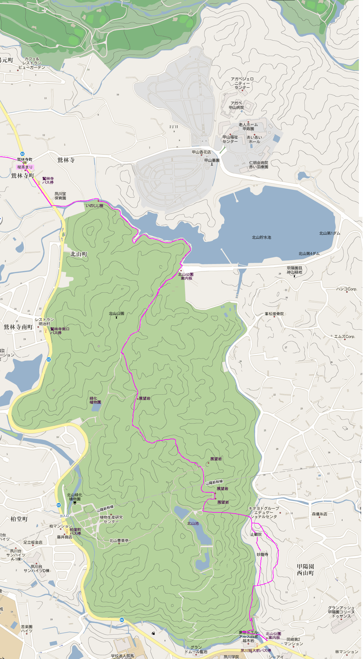 B 甲陽園駅から北山公園経由で歩く ==>歩行時間は 1〜2時間です (北山公園の地図)