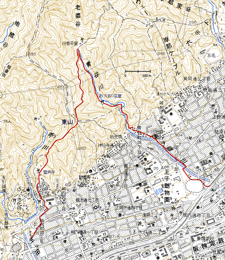 王子公園駅東口〜青谷道〜水場〜行者堂(ここまで登り)〜