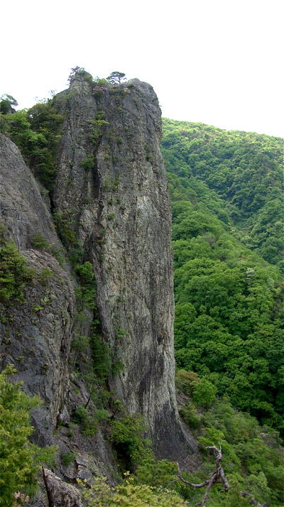 鎌倉峡の谷から吹き上げる風がさわやかな百丈岩と