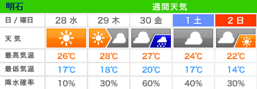 (9/27時点での予報) ↑クリックで最新の天気予報 |