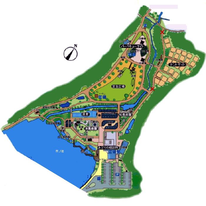 鍋場所 市ノ池公園・テントサイト(公園マップ、公園のHP)