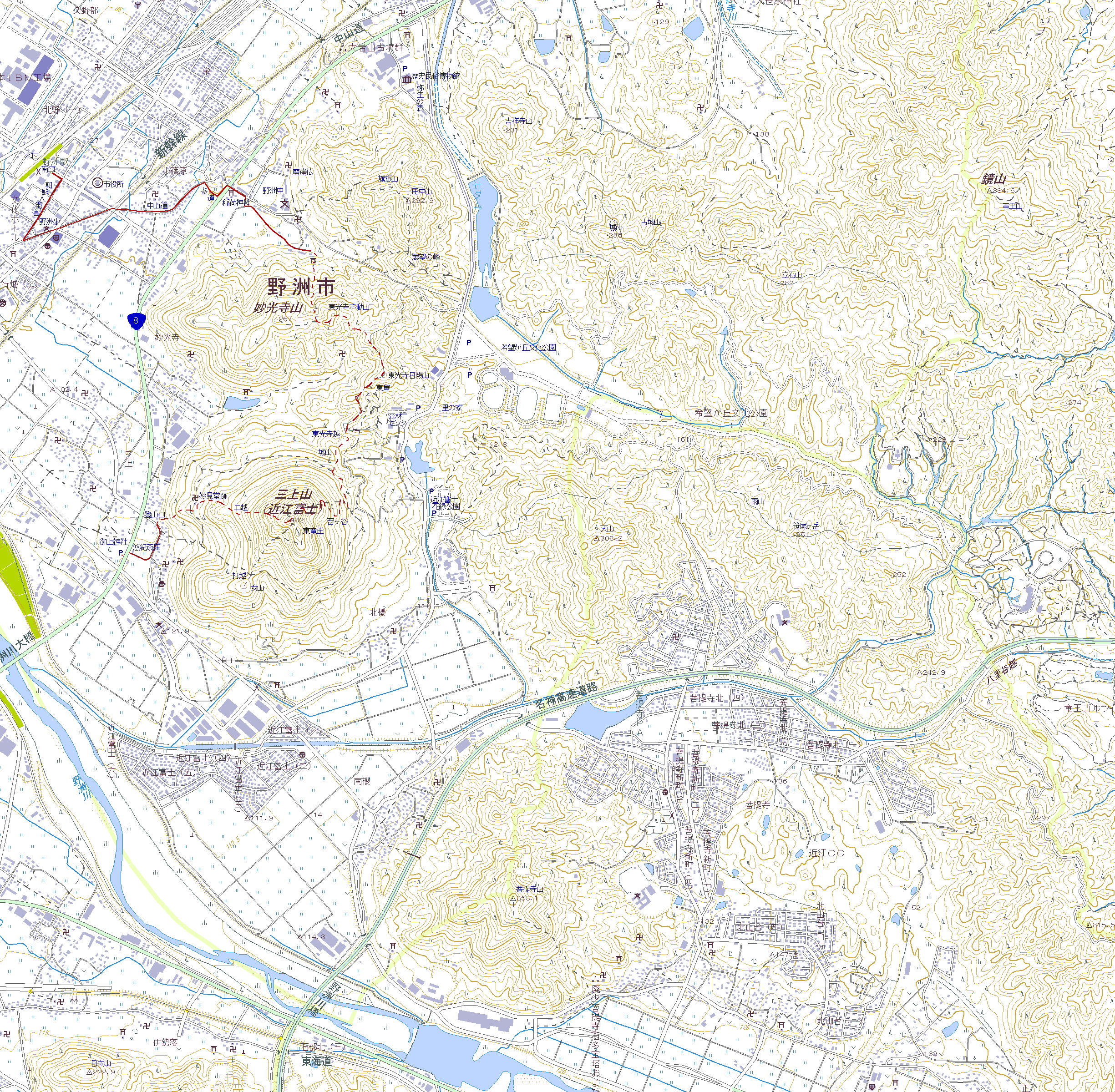 車組は上記8号線で解散し徒歩御上神社駐車場まで戻るか、JR野洲駅から