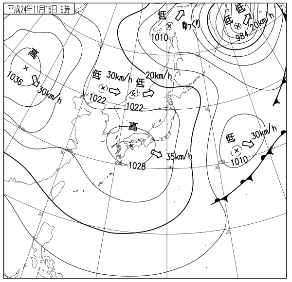 (クリックすると1日前からの天気図がでてきます)