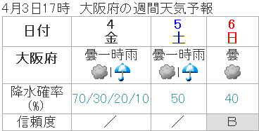 4日の雨と、4日の17時〜18時の天気予報を確認して実施の可否を連絡します。