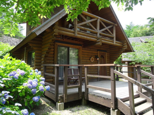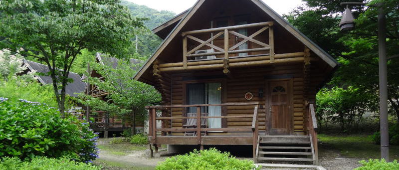 ログハウスは、2階が寝室(ベッド4台が標準)、階下は12畳ぐらいかな、ワンフロアーでオール電化でした。中にソファーと大型テレビがあります。ログハウスエリアでは、火器はダメなようなので、基本的には電気で行くしかありません。ログハウスの前の渓流地帯では、七輪を持ってゆきサンマを焼くぐらいは出来そうです。(日曜日なので、場所取りが大変そう!!)