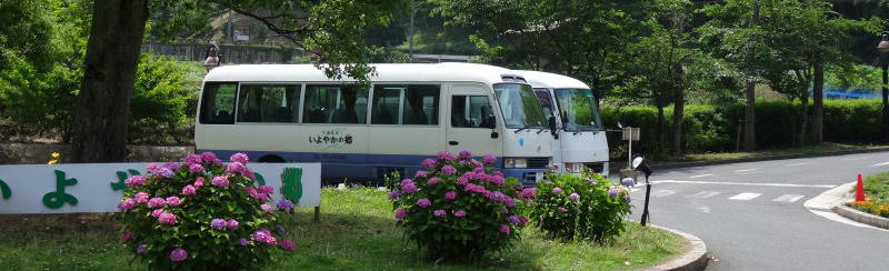 2.いよやかの郷の送迎バス利用(乗り場が駅から少し離れている) 約40分 11:55、15:00