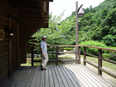 山では秋の花が咲き始めています。今年のサンマパーティは大久保雑草園から飛び出して、大阪・岸和田の山間部のログハウスで実施する旨を連絡しました。いよやかの郷全体は、牛滝川の渓流に沿って細長く、その中でログハウスは最上流に位置しています。1Fが共用空間、2Fが寝室(4名)です。居心地の良さそうな建物です。