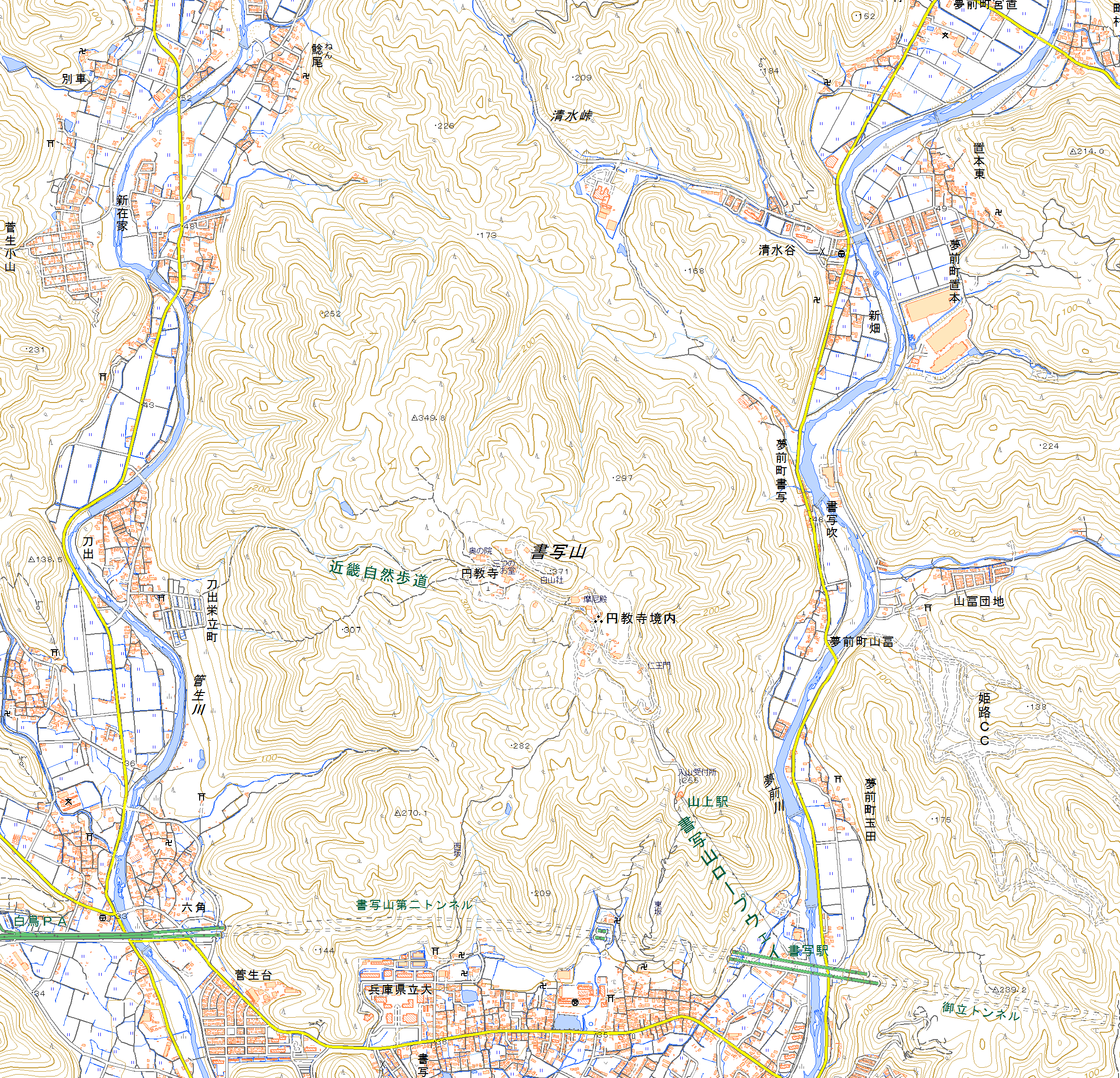 目的地 書写山(371m)円教寺 (姫路市) 地形図