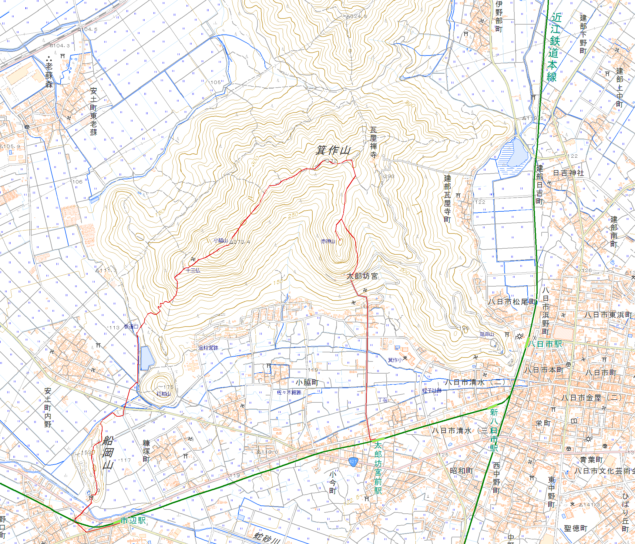 (ただし、太郎坊宮前駅あたりの標高は約120mです)