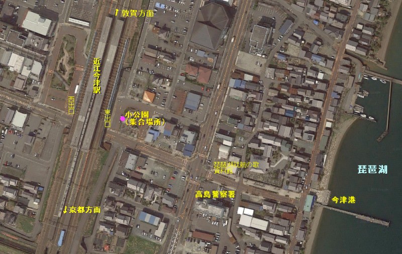 JR近江今津駅前の集合場所(←をクリック)