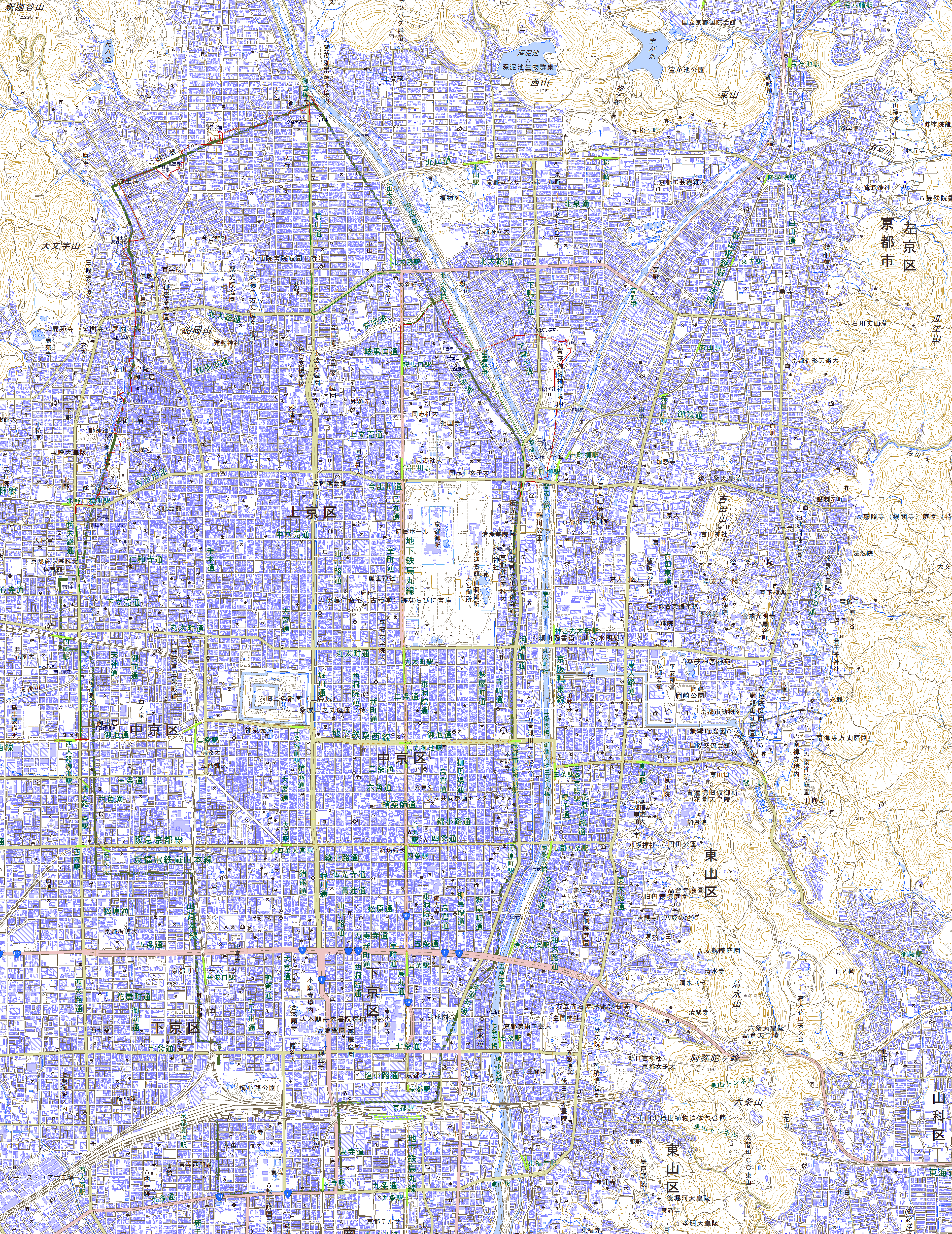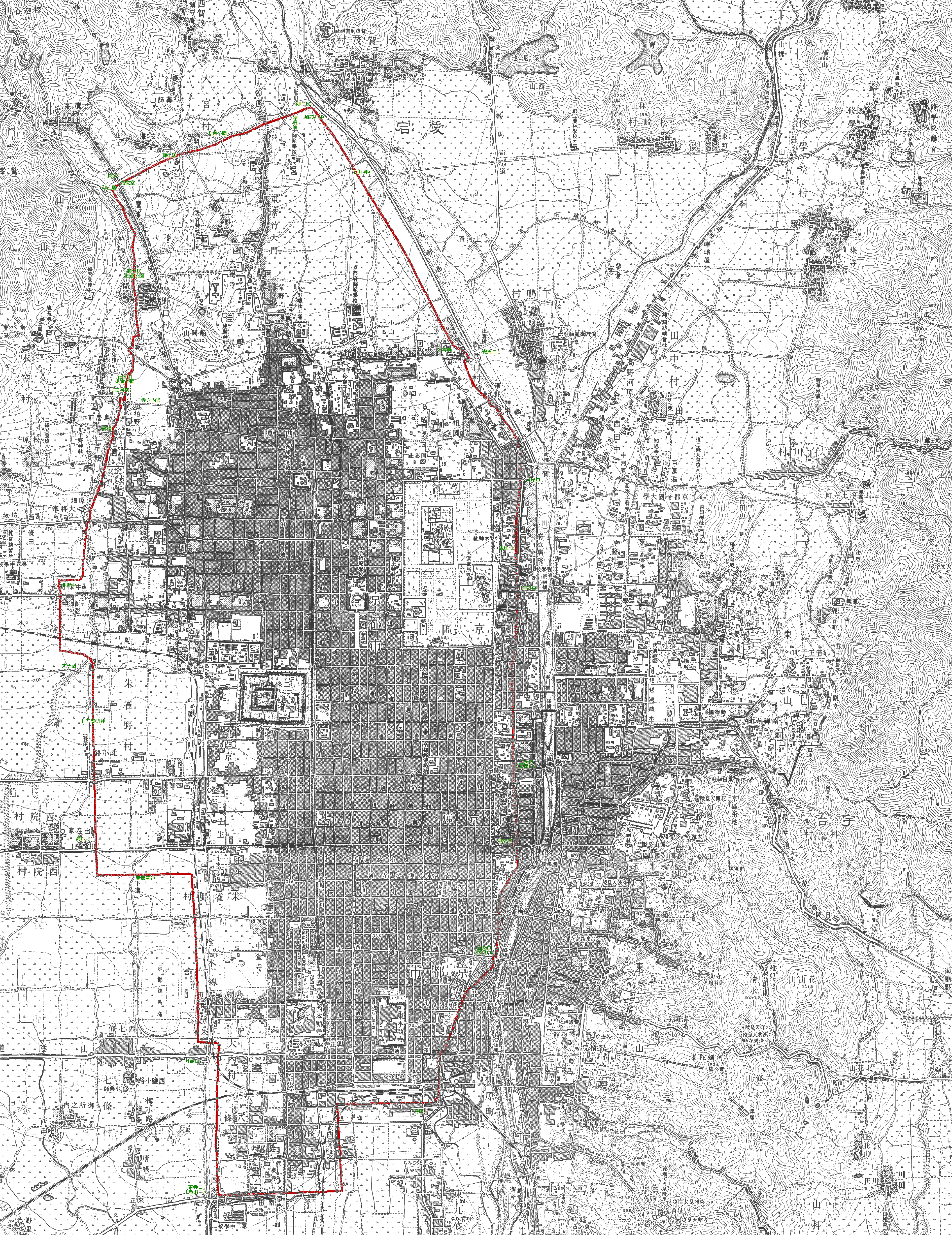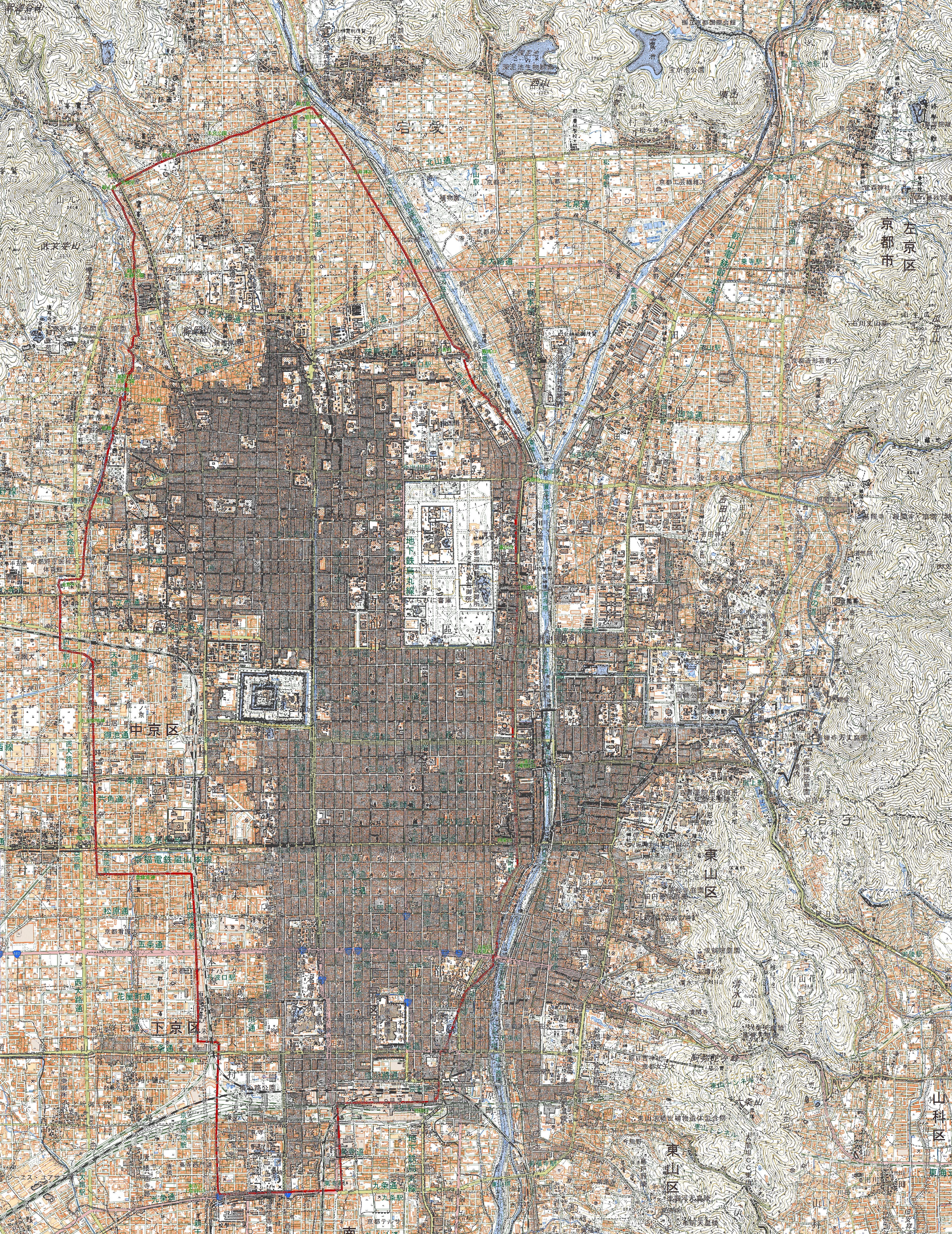 参考地図 (歩行ルート) ![]() (明治42年測図) 赤線は御土居の推定地 ![]() (現在に明治期の地図を重ねたもの) 赤線は御土居の推定地 ![]() |