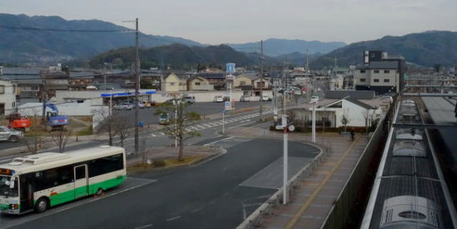 加茂駅から目的地の鷲峰山が見える。大和路快速の始発駅。