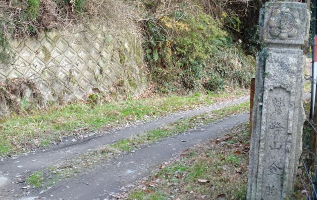 金胎寺から谷筋に降りれば金胎寺入口の標識がある