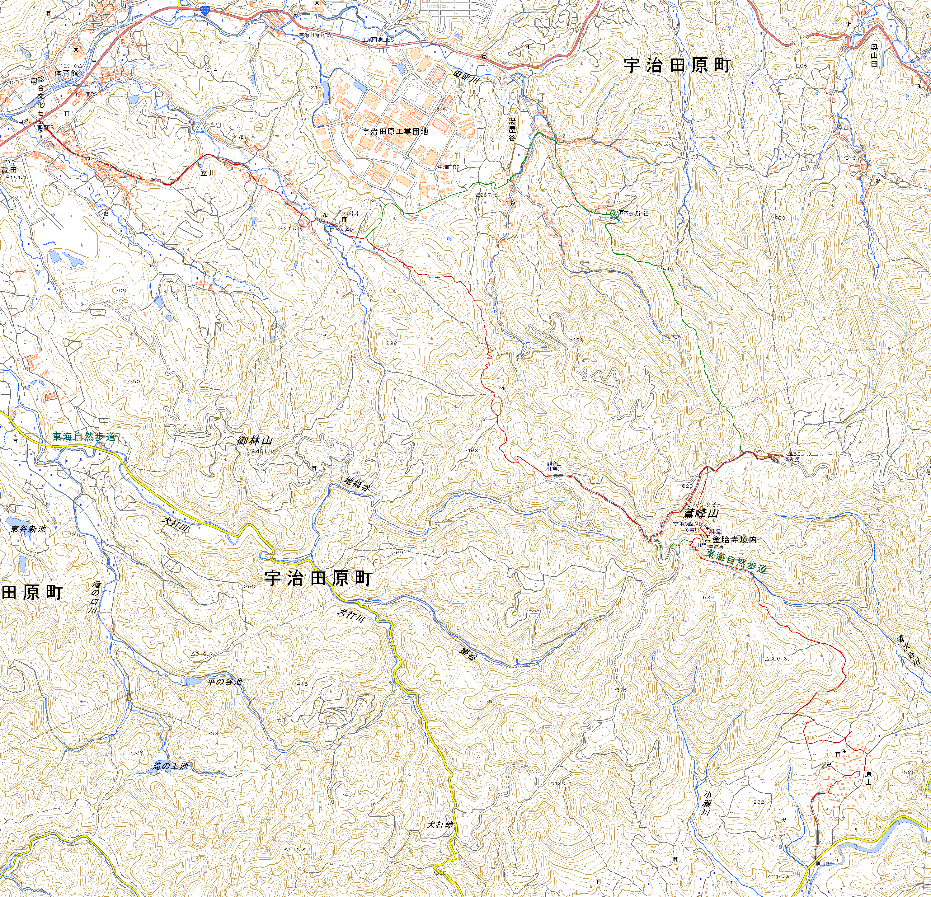 実施場所 鷲峰山(682m) 地形図(予定コースを赤線で記入しました)