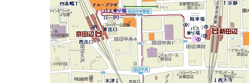 アクセス JR東西線・学研都市線を中心に(京田辺駅が下車駅です)