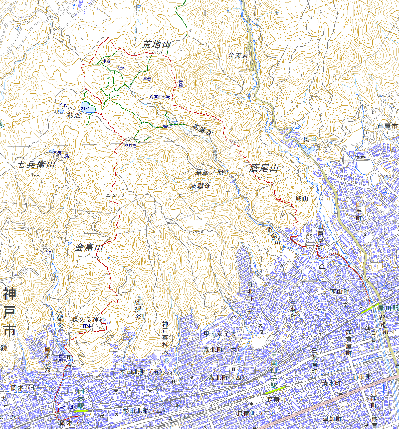 地形図(荒地山を中心に表示します)