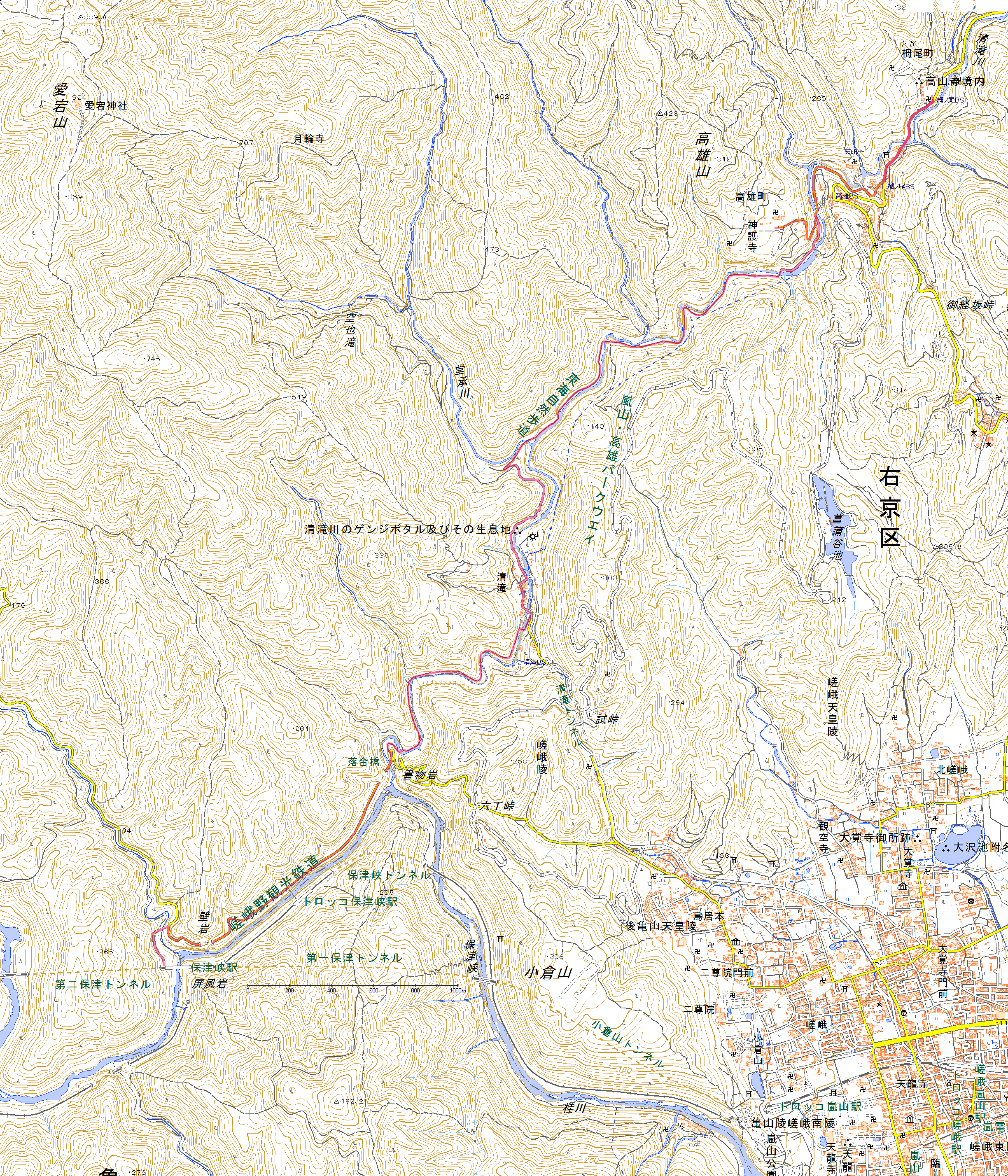 コース JR保津峡駅〜保津峡〜落合橋〜清滝〜高雄・神護寺(コースは現在での予定です)