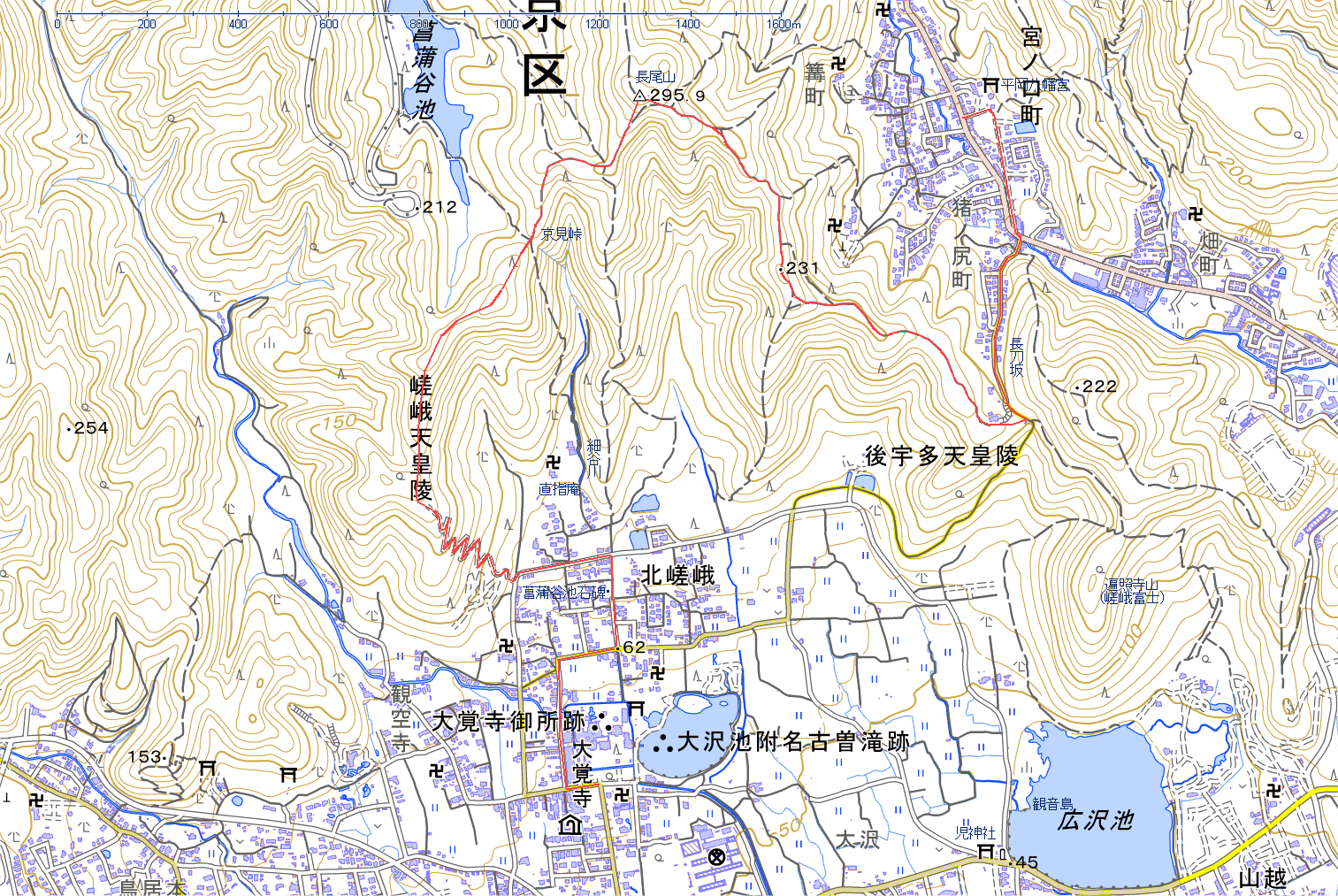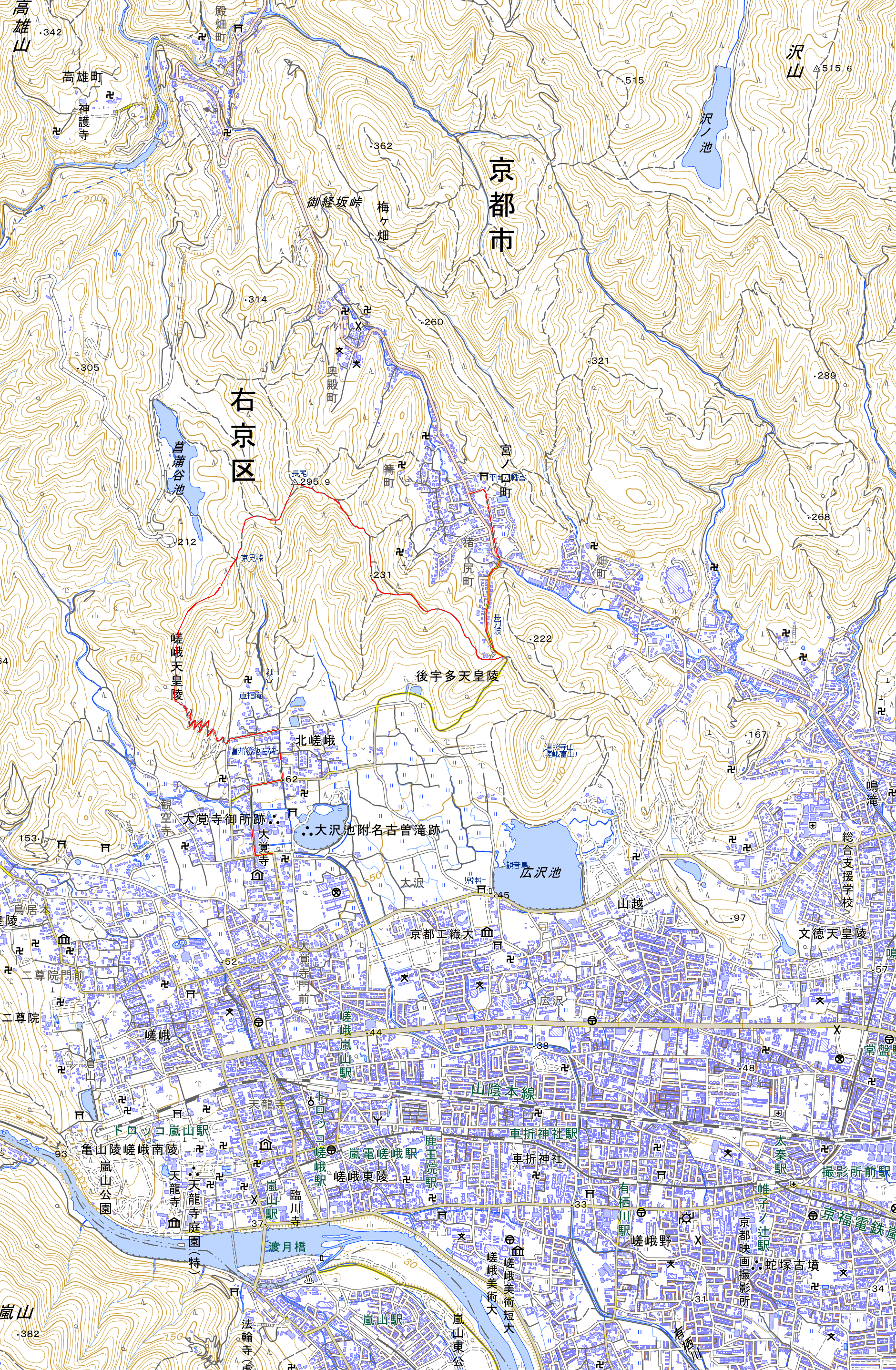嵯峨天皇陵〜参道〜菖蒲谷池石碑〜大覚寺