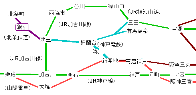 アクセス (三ノ宮〜粟生間では神戸電鉄利用が安いです)