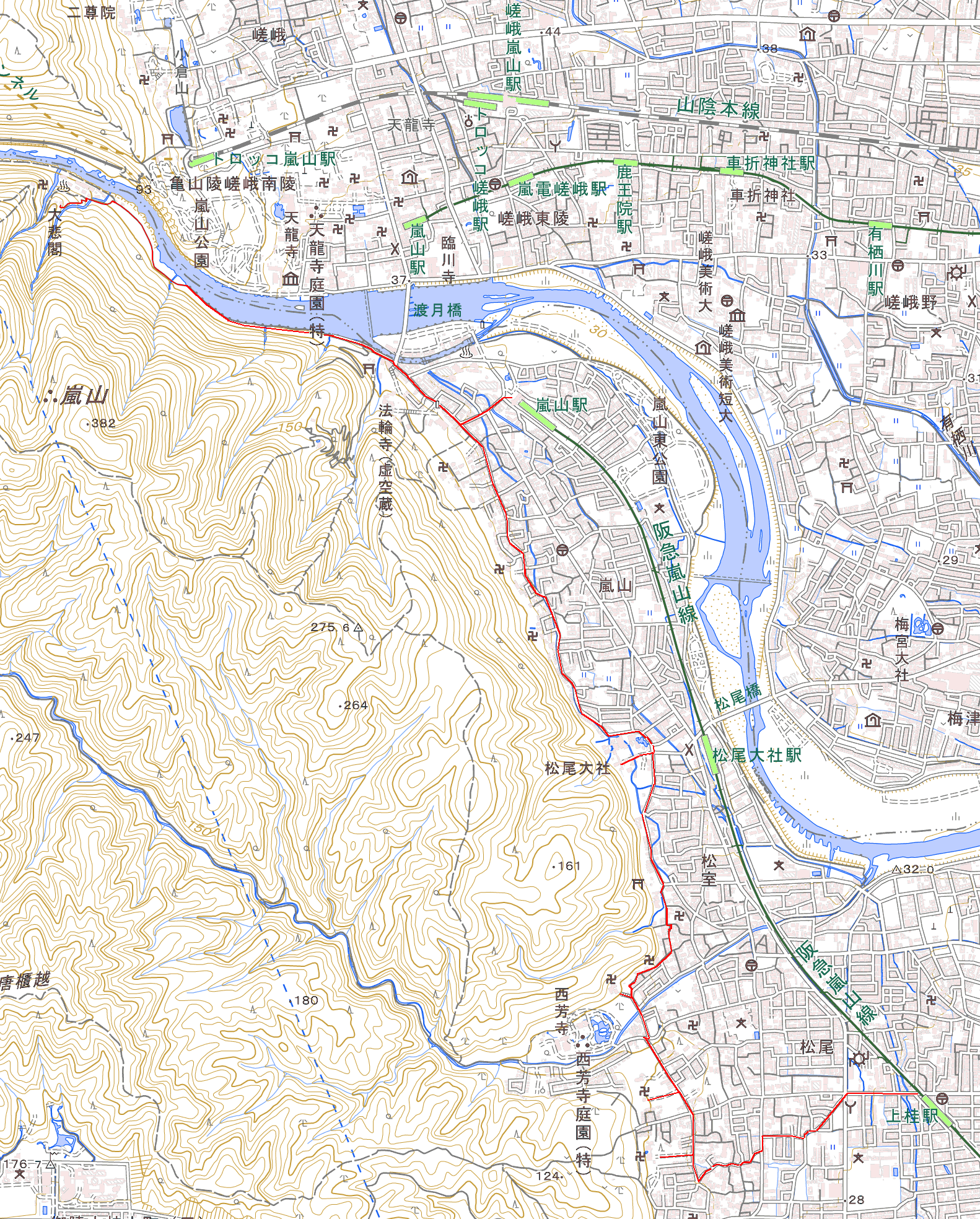 嵐山駅〜大悲閣〜(もどる)〜松尾大社〜鈴虫寺〜地蔵院〜浄住寺〜上桂駅
