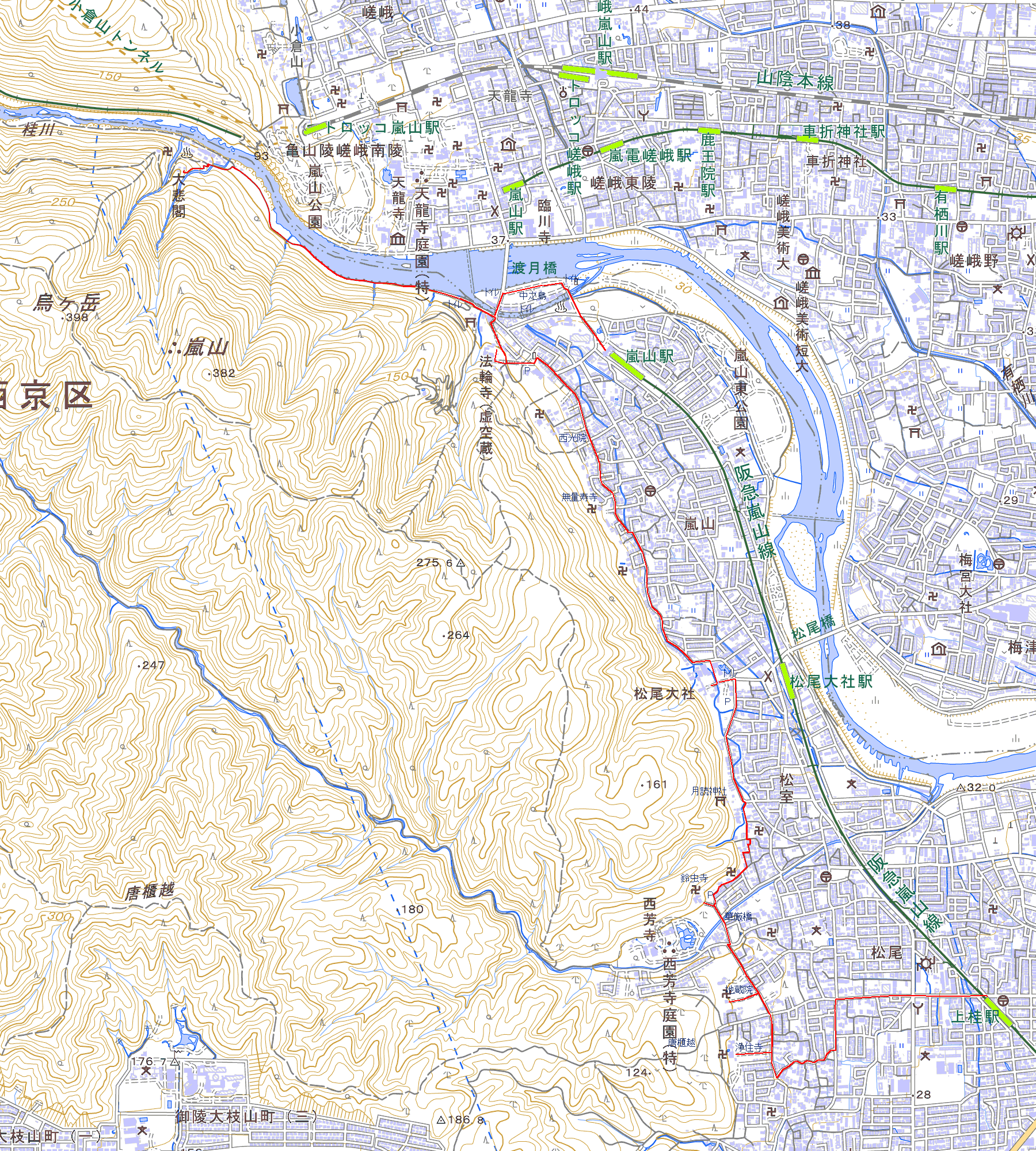 下見に行ってきました。嵐山の紅葉はちょうど見ごろ、人の多さにさもありなんと思ったほどでした。渡月橋を渡らずに桂川の右岸を遡ると、人が激減。両岸の山が狭くなってくる様は、ミニ三峡もかくの如しかと思われる景観。嵐山の人混みと対照的に猿が出てきてもおかしくない雰囲気でした。それでいて和船が次々に来る様は、角倉了以による桂川の開削という功があってのことを再確認しました。大悲閣あたりは川が狭く河原は固くて黒い岩。開削が難工事であったことも想像できました。大悲閣へは標高差50mばかりですが、嵐山からの急崖に作られた階段は、ゆっくり登るべしの禅語のようでした。途中に待合いのような風情の座席が準備されているので、ここに坐してゆくりと風景を眺めるのがお奨めです。 |